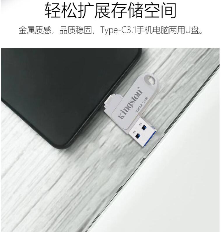 金士頓Type-c手機電腦兩用U盤128G高速USB3.1華為小米安卓OTG優(yōu)盤